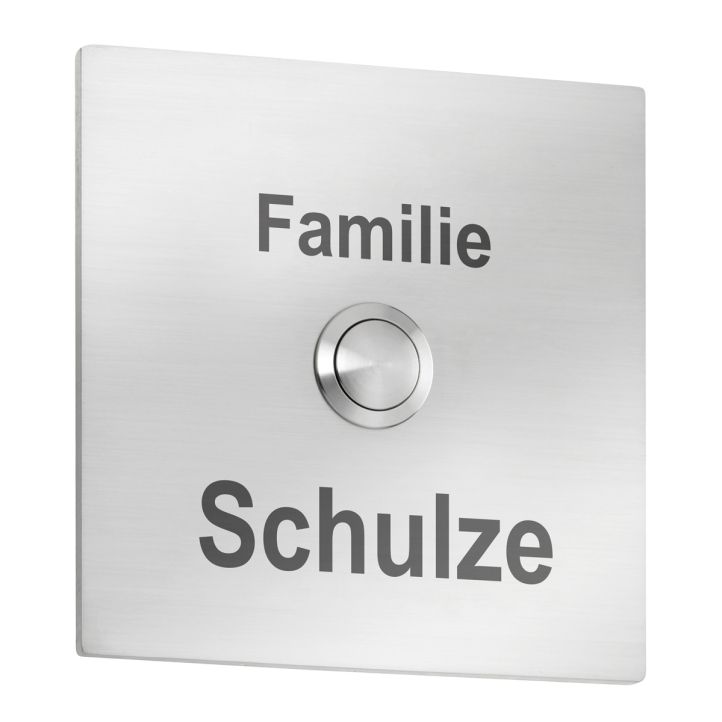 Das Produkt besteht aus Edelstahl inkl. Laserbeschriftung in schwarz. Anmerkung: Die Klingelplatten werden mit Silikon befestigt.
