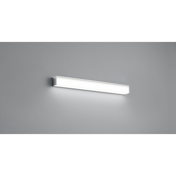 Die LED-Spiegelleuchte NOK 60cm chrom von Helestra setzt über Spiegeln eine klare, moderne Lichtlinie. Die glänzend verchromte Oberfläche wirkt präzise und reduziert, der kompakte Querschnitt von 6 cm bei nur 6 cm Ausladung hält die Leuchte dezent nah an der Wand oder am Spiegel. Als Wandleuchte dient sie der dekorativen und unterstützenden Beleuchtung und ergänzt die Grundbeleuchtung im Raum.